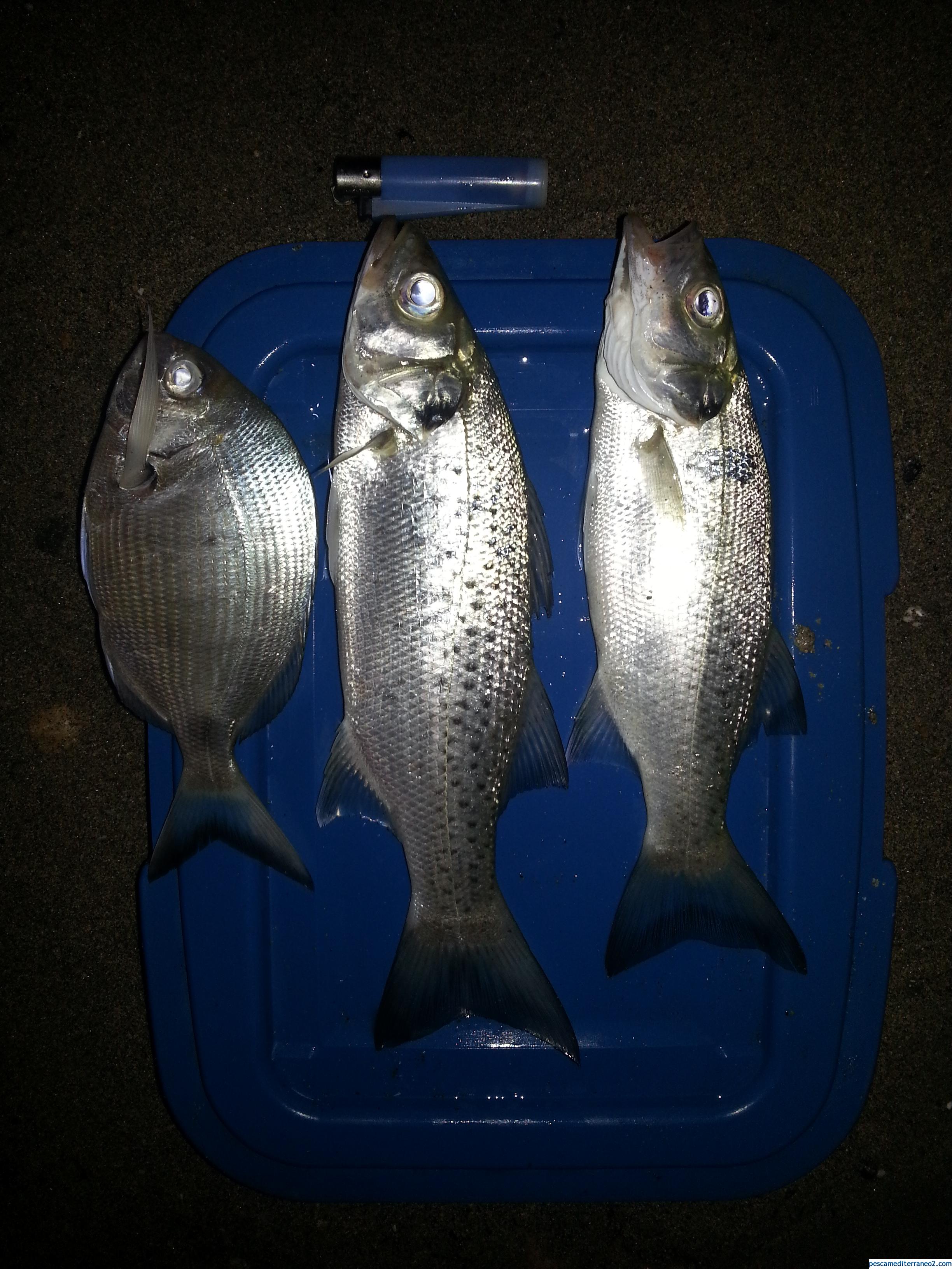 Otra vez salvando la porra con 2 bailas y un sargo pequeño que venía embuchao, que aun dando la talla hubiera sido devuelto a la mar.