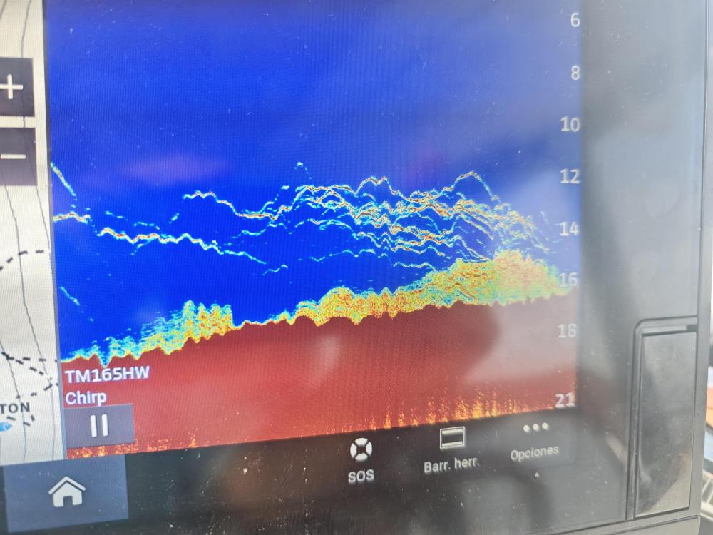 Un tema muy interesante y hoy por hoy la sondas ya necesarias. para interpretar las imágenes hay que analizar bien lo que esta pasado debajo del casco,pues la tecnología a avanzado pero el concepto de como trabaja es el mismo. Kaiman el transductor que tu tienes….tiene dos menu principales.. el Ultra -clear que usa el CHIRP traditional que en teoría te da un máximo de 264 metros con condiciones optimas….densidad de agua claridad incluyendo la salinidad. teine el ultra performance que en teoria da un máximo de 66 metros. tienes que buscar en el menu el CHIRP y activarlo,normalmente en los menu vas a ver una ventana adonde los transductores aparecen y mas probable tengas que pulsar el que tú tienes. tu transductor montado en la popa tiene que estar muy bien montado para que el ángulo optimo tenga el centro del cono lo mas vertical posible.La mayoría de los transductores de ultima gama están diseñados para que el angulo del cono se variables…el tuyo de 24 a 16 grados en CHIRP. Es logico contra mas grande el angulo de cono menos profundidad te va marcar.. 12 grados fijo era algo normal….yo en un tiempo tenia dos transductores…..uno de 12 grados y uno de 5 grado para mas profundidad…….piensa y visualiza la señal trasmitiendo como un cono bajo el barco…lo primero que vez en la pantalla es el comienzo del cono que siempre esta por delante de la proa no debajo….lo que está directamente debajo del casco en vertical es lo que esta a mano derecha de la pantalla…en el A SCOPE…..difícil de interpretar aveces. Los KHz. el CHIRP High Wide opera en (150-240 KHz) UHD Clear View CHIRP en (760-880 KHz) las dos opciones operan en 350 W…vatios cada una ósea no llegan a 600W. los transductores que alcansan mas profundidad operan en 33/50 KHz….y también suelen tener 200kHz. los KHz mide la velocidad y la frecuencia de la longitud de onda,menos KHZ la onda es mas lenta pero llega a mas profundidad. No creo que el Garmin que tienes sea compatible con uno de 1000 vatios,pero creo que alineando el plotter con el tranductor que tienes y el CHIRP de vería poder hacerlo en el menu y los 200 metros son alcanzables. un saludo.2 puntos