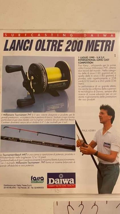 Si hay un modelo de carrete multiplicador mítico en la historia de la pesca ese es el original Daiwa Millionaire Tournament 7 HT de color negro. Más duro y resistente que un martillo de herrero, y más simple que el mecanismo de un chupete. Construcción made in Japan. Según este documento, el carrete se usó en competición por primera vez en el año 1990. Paul Kerry, patrocinado por Daiwa, y leyenda del mundo del surfcasting, fue quien lo hizo superando holgadamente los 200 metros. Pero es un carrete cuyas referencias más notables nos vinieron desde el mundo de la pesca a surfcasting. Los vídeos VHS sobre pesca a surfcasting del inglés Neil Mackellow, y del italiano Sandro Meloni, son los videos más conocidos y legendarios entre los aficionados a la modalidad. Y uno de los protagonistas destacados en ellos lo es también el Daiwa Millionaire Tournament 7 HT. No conocer esto si te gusta el surfcasting es pecado mayor. Espero que los disfrutéis. No es de extrañar que ahora me haya dado por pescar con ellos. A ver si llegamos al agua Saludos.