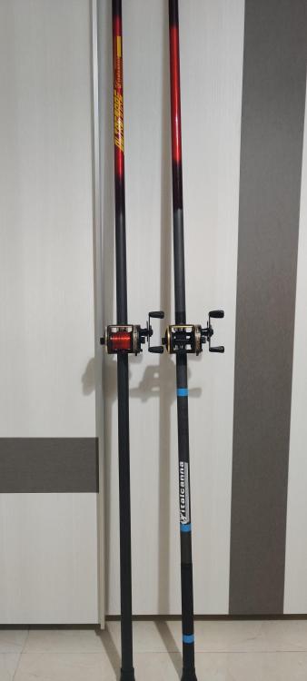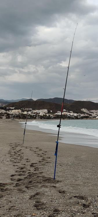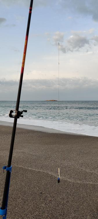 Ayer, por fin, llegó el día. Fue la primera vez en mi vida que he llevado a pescar una pareja de cañas con multiplicador. He pescado muchas veces con multiplicador, y con diferentes cañas, pero llevando una. Salí sin apenas preparar nada, usando unos bajos tipo pulley rig improvisados con plomo breakaway de grapas, y sin toda la minutería necesaria. En especial una perla tope pegada al emerillón pequeño, que no tenía, fue el principal punto flaco. Por suerte solo se deslizó la gameta por el emerillón grande una vez. Las cañas de repartición, los multiplicadores, el lance pendular y yo nos llevamos bastante bien desde hace ya muchos años. Las Oltremare con grapas aguantan bien el plomo como buena caña de repartición auténtica. El lance es una pasada y sale bastante línea del carrete. Metros ni idea, pero el cebo caía en agua No hubo picada, pero estuvimos todo el tiempo pescando de manera efectiva en un mar con bastante fuerza, y con mar de fondo. Con esto me quedo. Los peces ya llegarán. Las capacidades de estos equipos en estas condiciones son ilimitadas. Con un buen tarado de los diferentes frenos de los carretes multiplicadores, es tan sencillo pescar como con un fijo. En este caso, poner 330 metros de línea del 0'28 y un par de gotitas de aceite de baja densidad en los rodamientos. Gran salida de hilo y control total en todo momento. Y eso, que para tarado, este pescador-lanzador Deseando repetir con mejores materiales en los bait clips, cuando me lleguen, y con cebos más frescos que las 2 patas de pulpo congelado de hace más de 1 año. Saludos. -