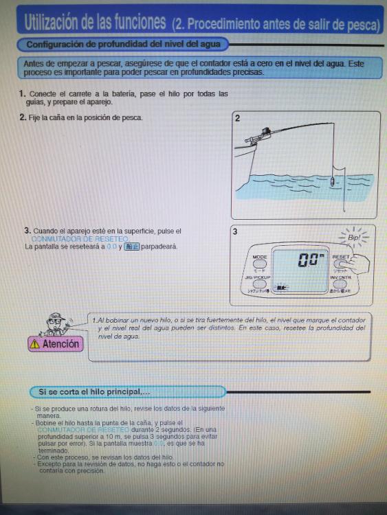 Hola, mira a ver si es que se te ha puesto a cero porque el carrete haya entendido que se ha cortado el hilo... Te paso info del manual para que lo resetees. No obstante pasame por priv tu mail y te lo envio completo si es que no lo tienes.