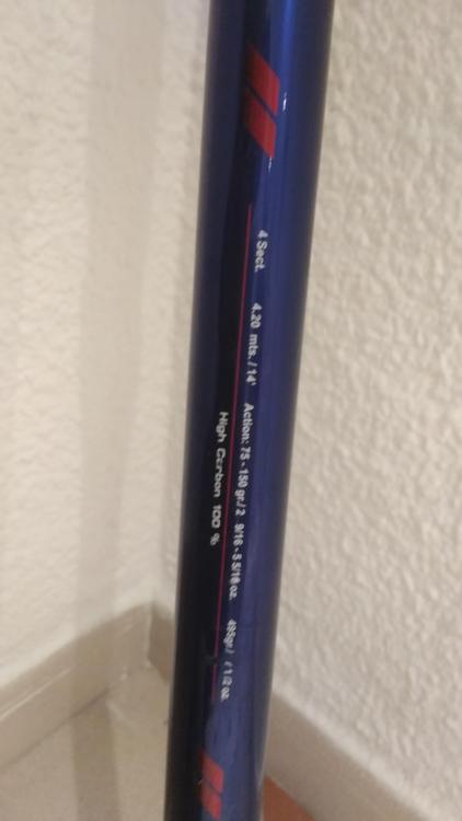 Pues al final la devolví y le compré a un chico de wallapop una Grauvell Telesurf 420 de 3 tramos con anillas Sic y toda de carbono acción 75/150 grms por 25 € y encantado con ella , muchas gracias! El chico me recomendó lanzar con 80/90 gramos, la probé con 113 y línea de 35 y ando sacando 90 metros, creo que está bien -